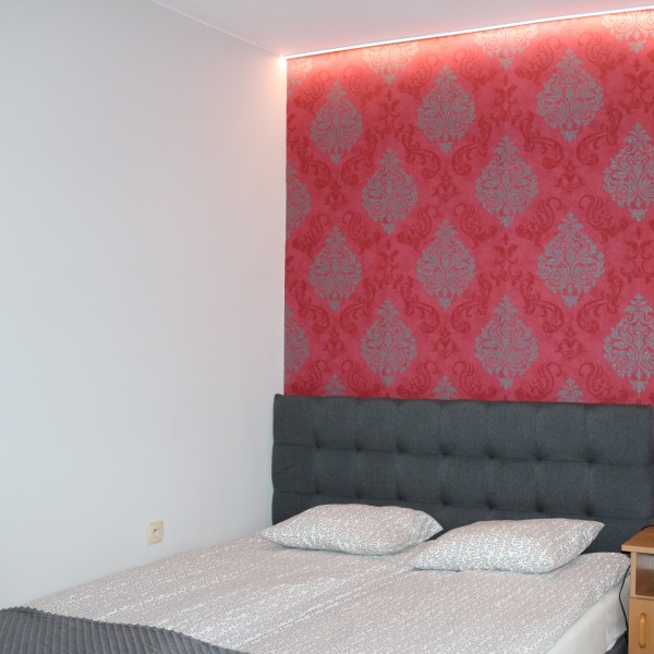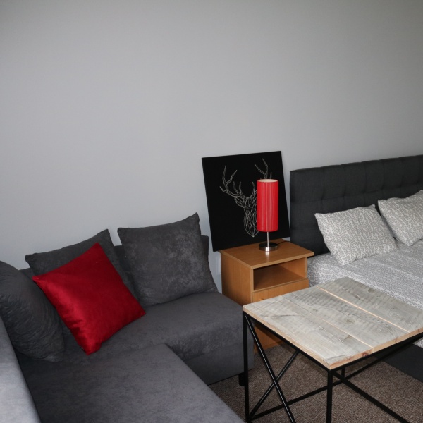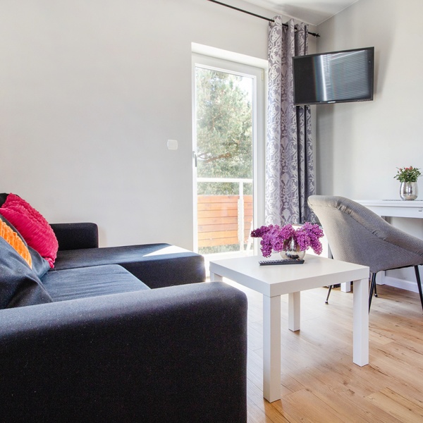 - łóżka małżeńskie (160cm) i kanapy rozkładane (pokoje 3-os) szafa, szafki nocne, stolik (ława) i krzesła